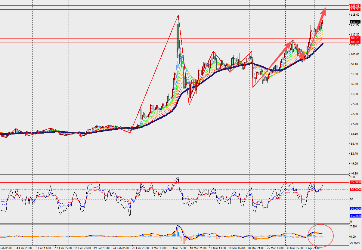 技术面:澳元兑美元H4级别震荡徘徊,并在48日多空分界线上方运行。此外,MACD双线和量能柱在零轴附近缩量。阿尔巴尼斯领导的澳洲政府向车主保证,运往该国的燃料船货保持稳定,并将部分地区的短缺归咎于恐慌性购买和分销瓶颈。