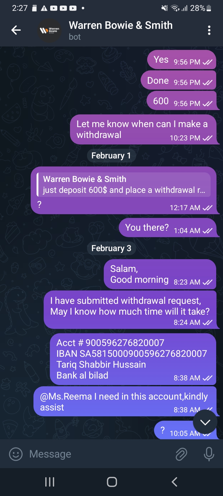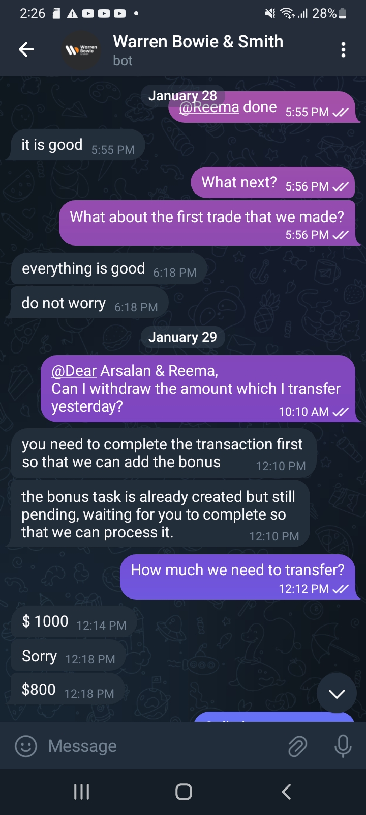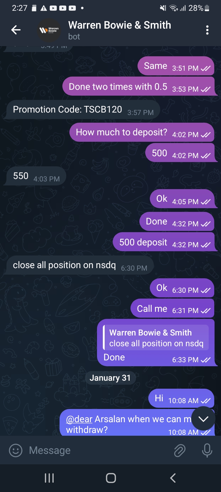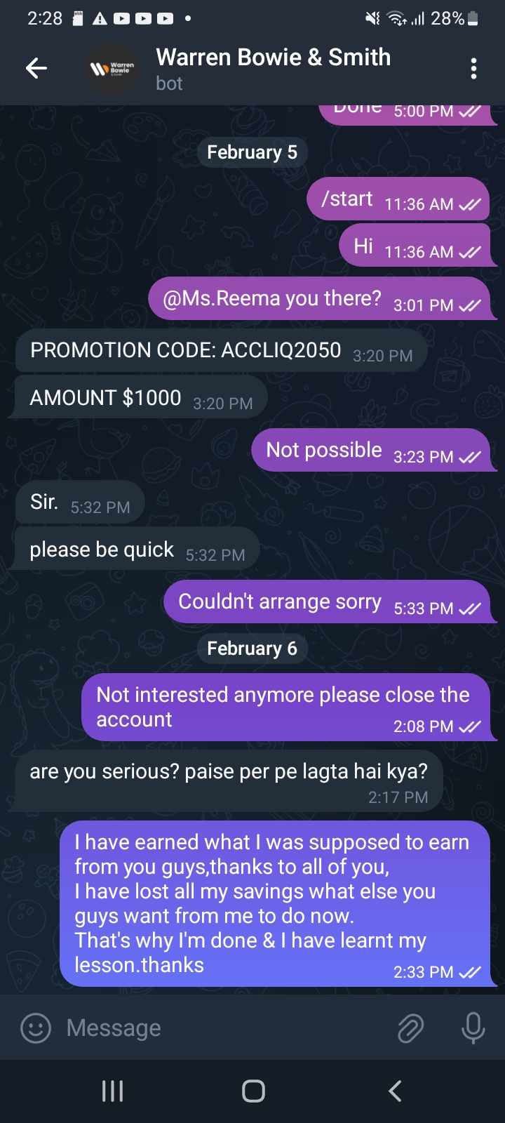 They flagged me and convinced me to invest and told me that my money would always be available when I wanted to withdraw but when I did the withdrawal test it didn't allow me to do it and it looked like the request was just made but It does not allow me to withdraw money, They convinced me by satisfying me that my money is safe and managed to convinced me to invest 3000$ & all of the sudden one day they made a investment at one place & all of the sudden the money start to went in negative & eventually all liquidis & there's nothing left. They did this because I was consistently asking them for withdrawal. Kindly help me out on this to recover my money & take legal action against them. Thanks