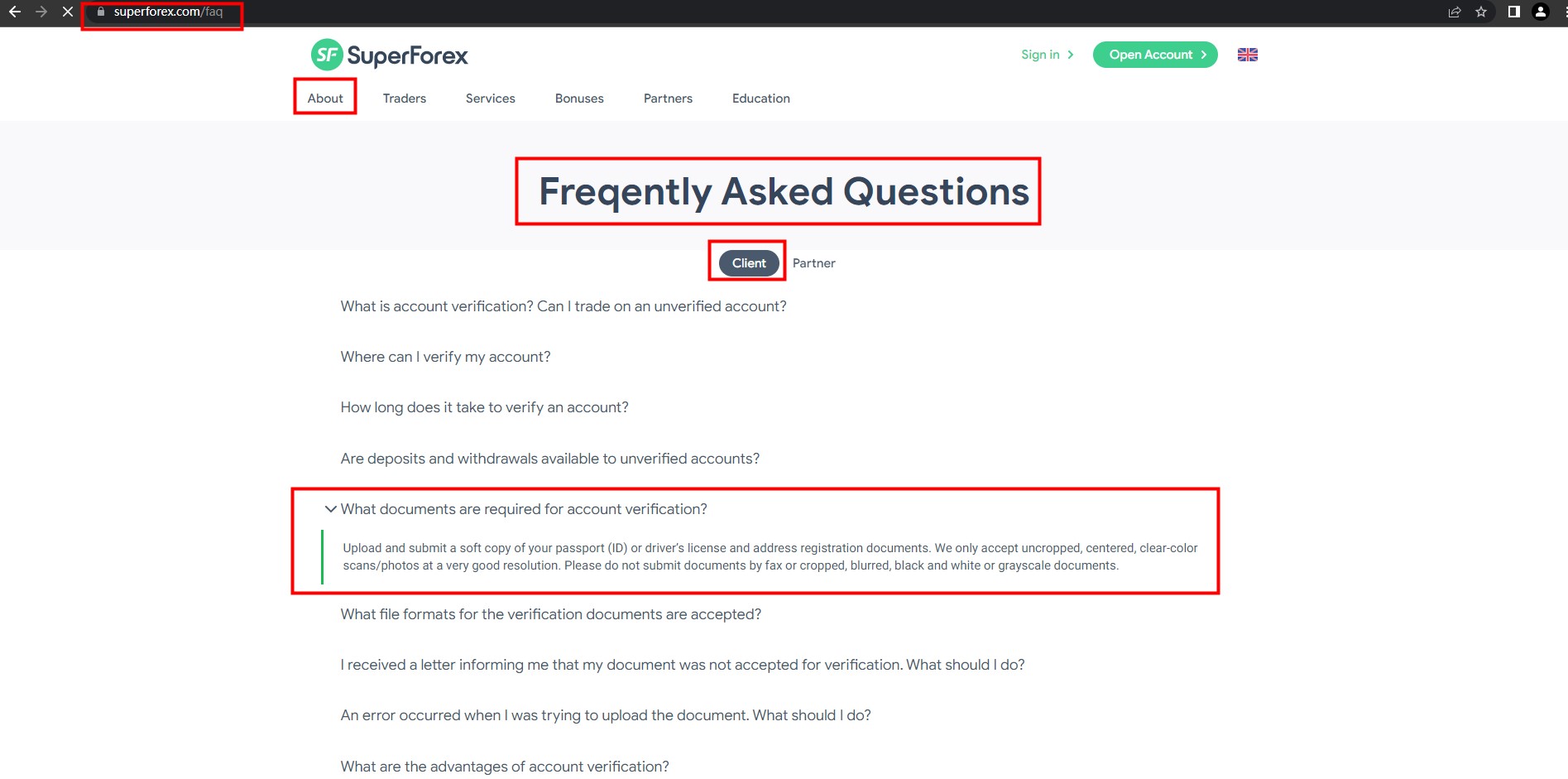 As for the question you asked, passport (ID)/driver's license and address registration documents are required to open and verify an account in SuperForex. For more information on this broker, you can check our full SuperForex review.