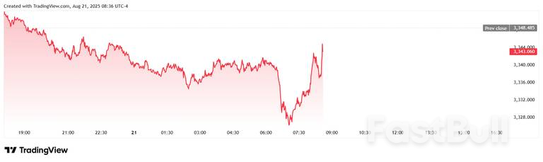 현물 금은 오전 8시 30분 EDT 데이터 이후 다시 세션 최고치를 향해 상승했으며, 마지막 거래에서 온스당 3,343.07달러로 세션에서 0.16% 하락했습니다.