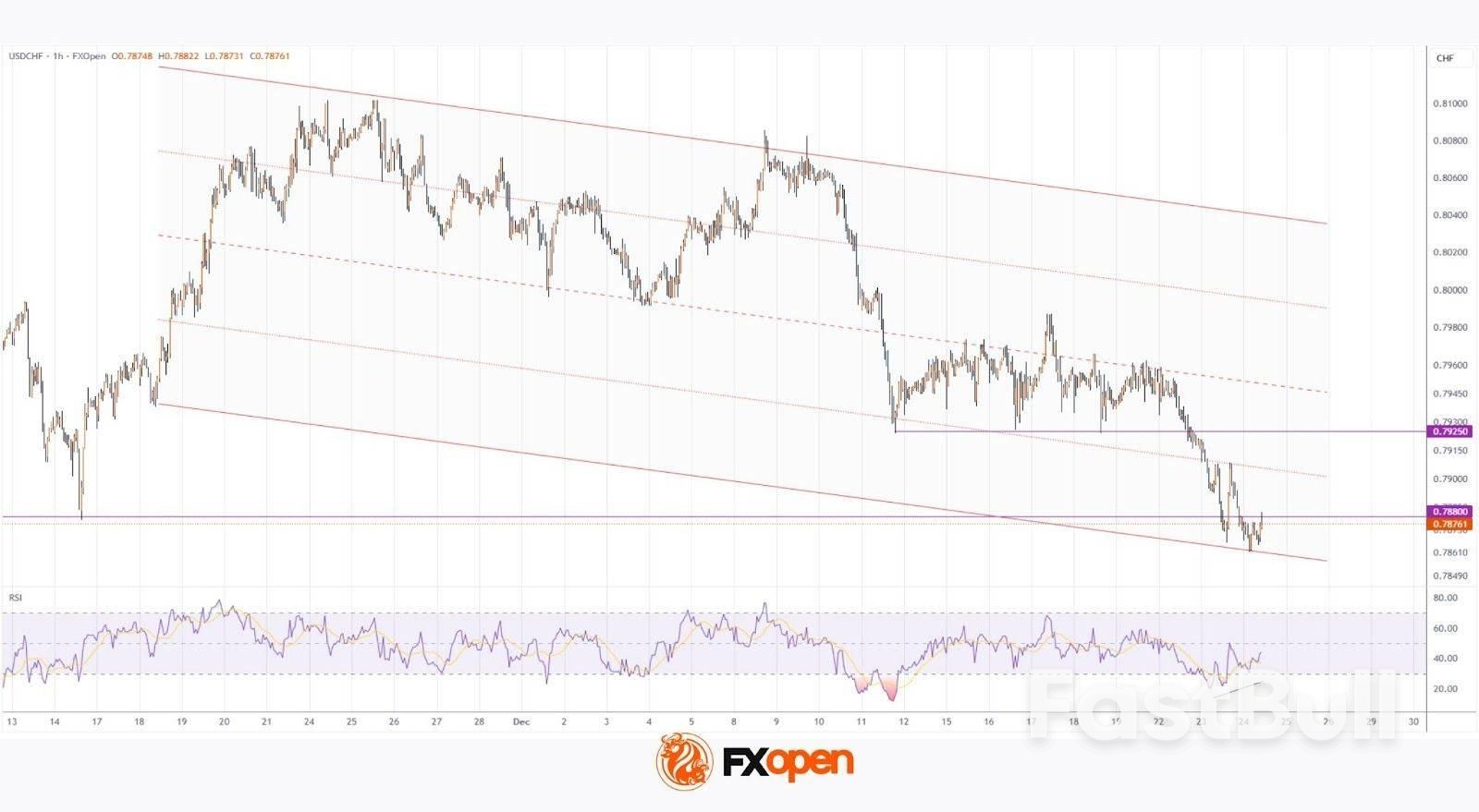 이러한 관점에서 볼 때, USD/CHF는 채널의 중간 지점을 향해 조정 반등을 보일 수 있으며, 이 경우 0.7925 부근의 이전 지지선을 다시 테스트할 가능성도 배제할 수 없습니다.