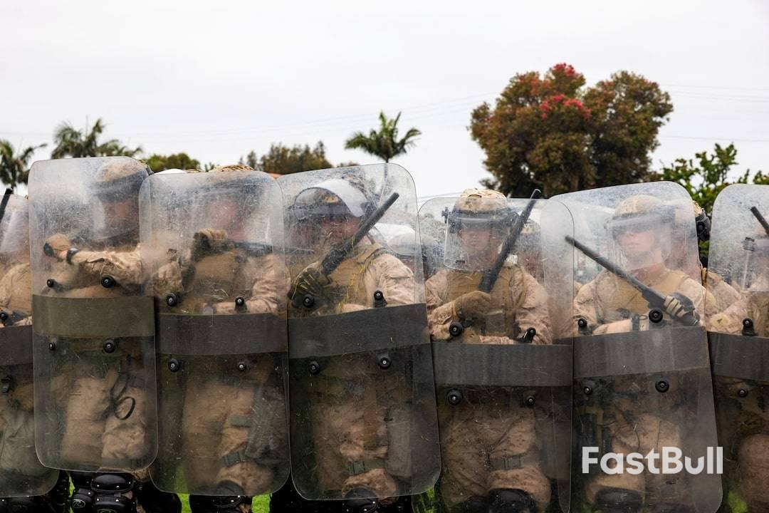 Pasukan Marin, yang telah berlatih di Pantai Seal di selatan Los Angeles County, akan berpindah ke bandar itu tidak lama lagi, tetapi tidak pada hari Rabu, kata Sherman. Mereka tidak akan membawa peluru hidup dalam senapang mereka, tambahnya.