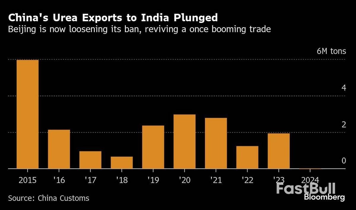 China telah mengurangkan sekatan ke atas penghantaran urea ke India, dalam petunjuk terbaru mengenai ketegangan antara Beijing dan New Delhi kerana dasar perdagangan Presiden AS Donald Trump menyasarkan kedua-dua negara Asia. India, pengimport utama nutrien tanaman di dunia, boleh mengambil sebanyak 300,000 tan, menurut orang yang biasa dengan perkara itu. Mereka meminta untuk tidak dikenali kerana mereka tidak diberi kuasa untuk bercakap dengan media. China biasanya merupakan pengeksport utama baja berasaskan nitrogen, walaupun ia telah mengehadkan jualan dalam beberapa tahun kebelakangan ini.