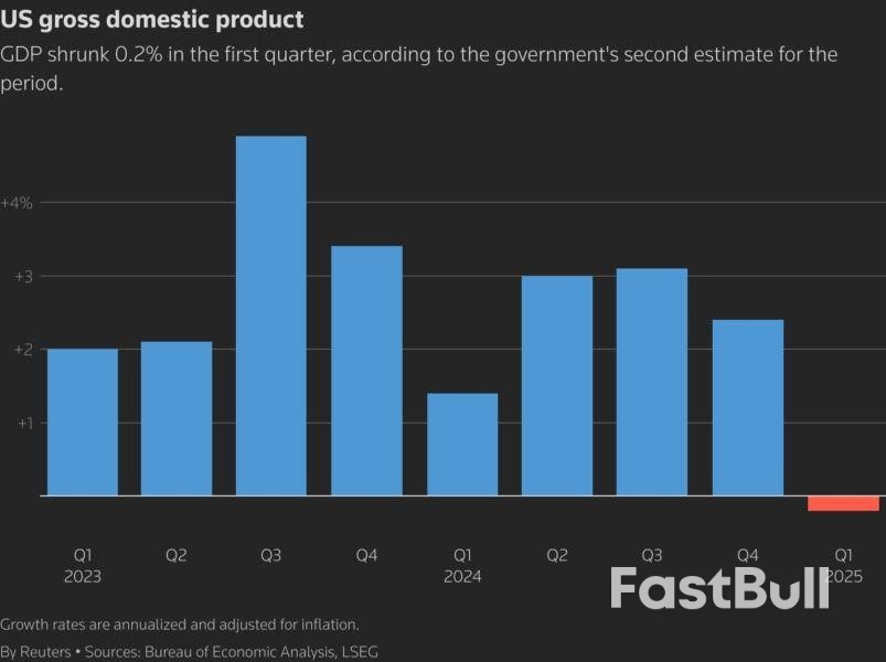 The deluge of imports sent gross domestic product declining at a 0.2% annualized rate in the January-March quarter, the BEA said in its second estimate of GDP. The economy was initially estimated to have contracted at a 0.3% pace. It grew at a 2.4% rate in the fourth quarter.