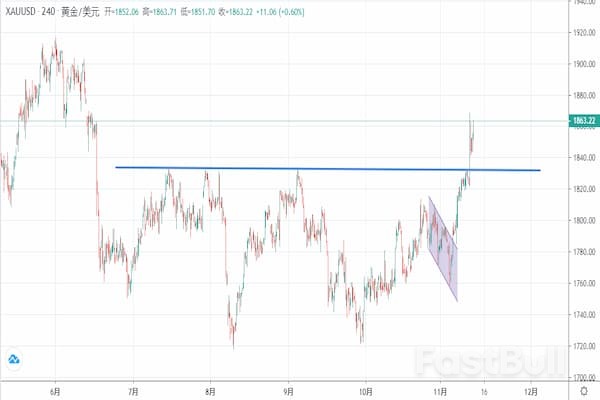 In terms of technical charts, gold broke through the key pressure level of 1832 after the early flag consolidation, and the next primary target are expected near 1900.