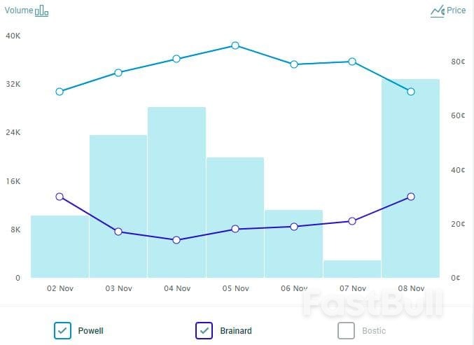 According to the latest odds on Predictit, a U.S. political betting website, Powell's chances remain high, even as Brainard's support continues to rise.