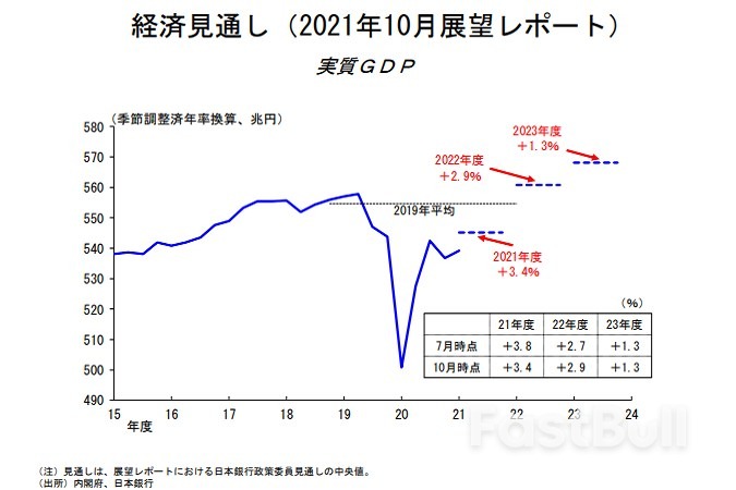 Under the above circumstances, the BOJ believes that Japan's real GDP will generally recover to pre-pandemic level in 2019 in the first half of 2022, while slightly later than the recovery in the U.S. and Europe. Thereafter, as the effective control of the pandemic and the resumption of normal economic activity progresses, Japan's economy continue to follow a growth path, supported by relatively high growth overseas economies accommodative financial conditions.