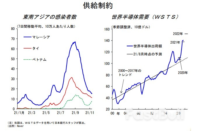 Supply-Side Constraints (left is confirmed new cases of COVID-19 in Southeast Asia, right is world seminconductor demand)