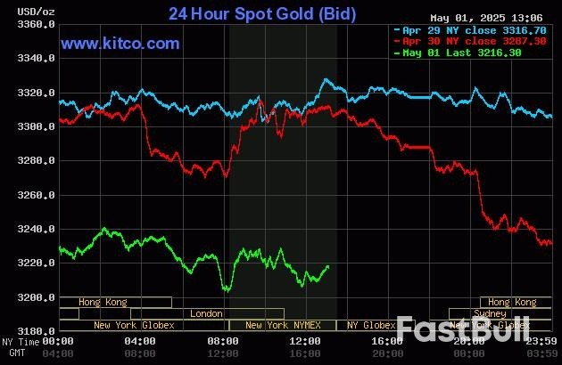Profit taking and weak long liquidation from the shorter-term futures traders are featured. Silver prices are moderately down. A steep drop in crude oil prices this week is a bearish weight on gold and silver, as is a sharply higher U.S. dollar index today. June gold was last down $96.30 at $3,222.50. May silver prices were last down $0.366 at $32.165.