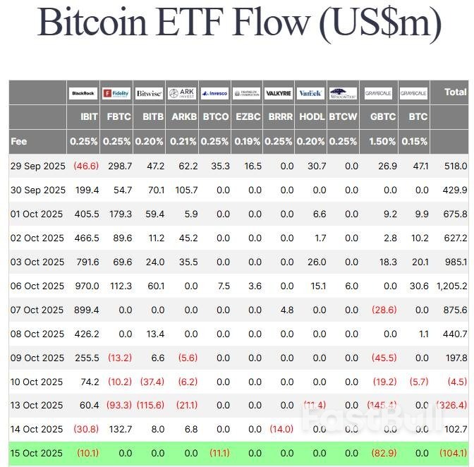 For context, Farside Investors’ data showed that the US Spot Bitcoin ETF has once again recorded an outflow of $104.1 million on Wednesday, October 15.