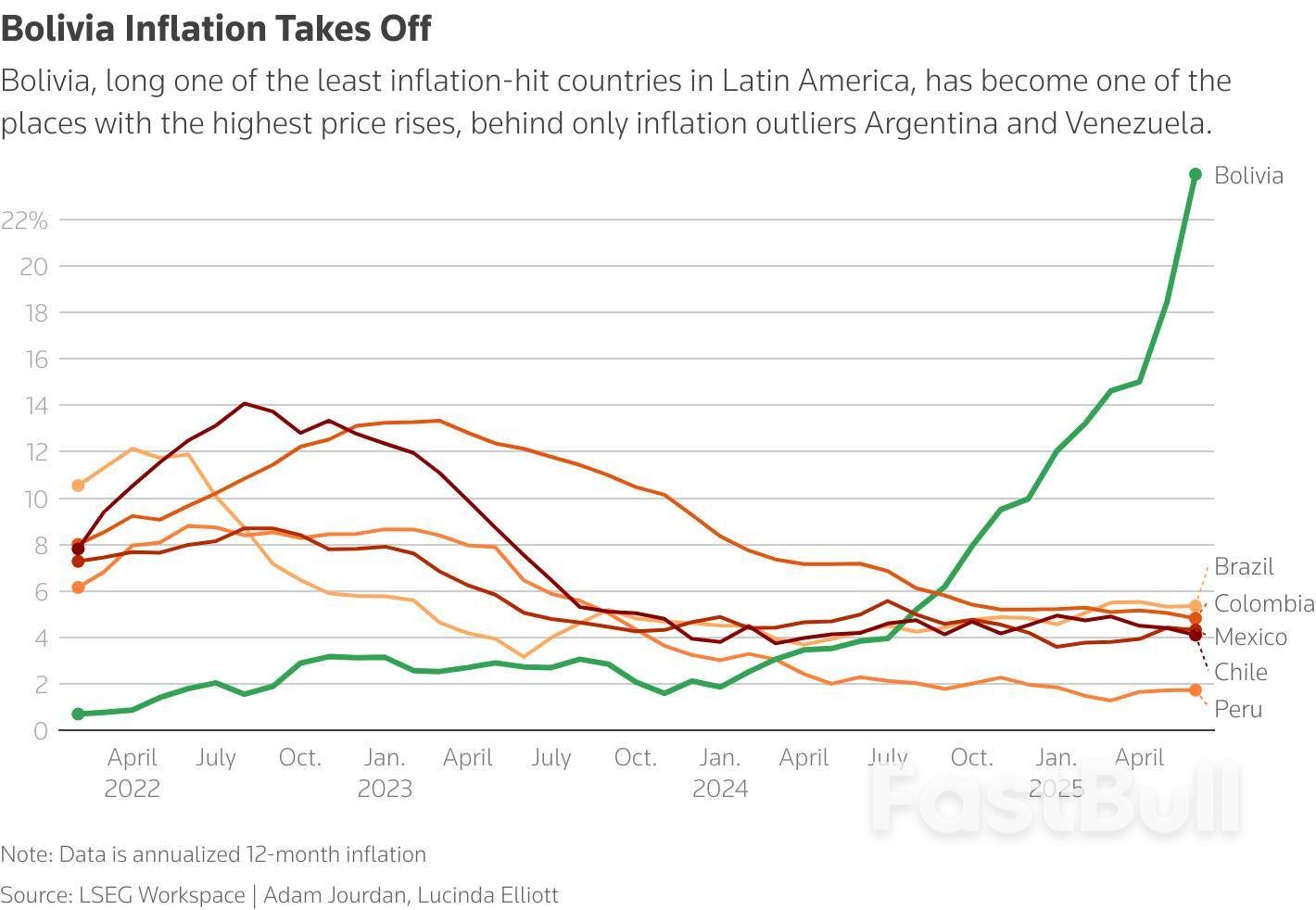 Bolivia's inflation is soaring past others in the region who were far more affected in recent years, including during the Covid-19 pandemic.Many Bolivians, especially those who work in the informal economy, were now struggling to make ends meet, said economist Roger Lopez."Prices of the basic food basket are going up fast," said Lopez. "Suddenly the math doesn't add up anymore."