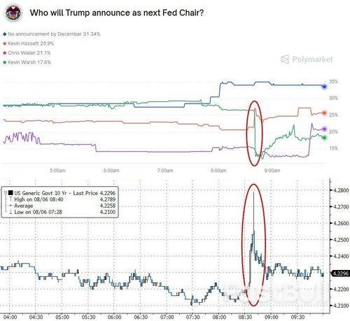 Interestingly, shortly after 1130ET, the odds of Kevin Warsh becoming The Fed Chair plunged...