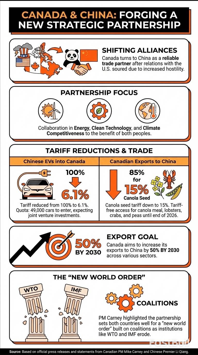 Canada pivots dramatically from US ties, forging a new strategic trade alliance with China, signaling a "new world order."