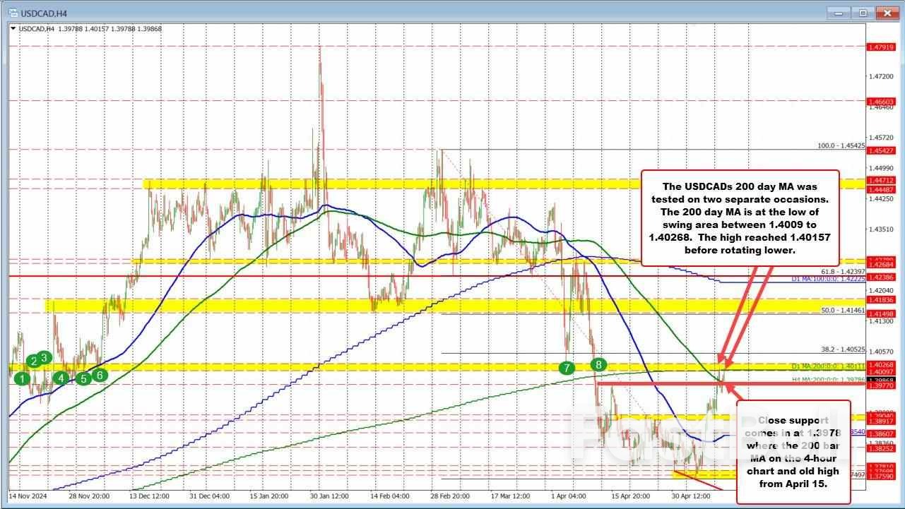 The USDCAD extended higher yesterday and again earlier today, but both rallies have stalled just ahead of a key resistance confluence. The area of interest includes: