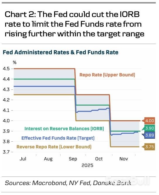 The Fed formally ended its balance sheet drawdown at the start of December, but liquidity conditions remain on the tighter side. The effective Fed Funds rate has risen modestly within the target range, and SOFR traded above the upper bound around month-end. While liquidity is not an imminent concern in our view, the Fed could pre-announce organic balance sheet expansion, or gradual QE, starting in 2026. Alternatively, the Fed could lower the interest rate of reserve balances (IORB) by additional 5bp to limit the Fed Funds rate from rising further, though we see the former more likely than the latter.
