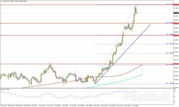 The Aussie Dollar started a major increase above 0.6800 against the US Dollar. AUD/USD cleared the 0.6880 hurdle to enter a bullish zone.