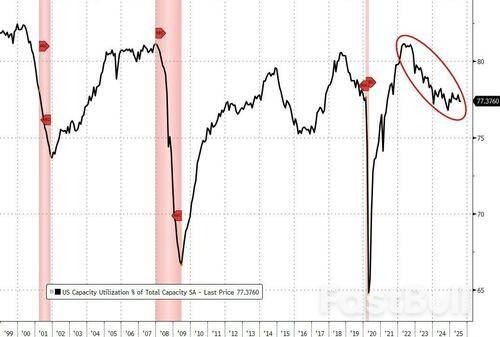 But,on the darker side of the ledger, Capacity Utilization continues to trend lower...