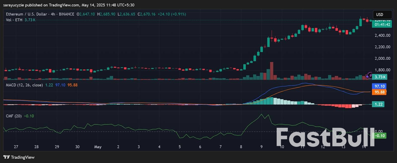 The four-hour trading chart has exhibited a brief upside pressure, lighting up the green candle. Ethereum could likely climb to the crucial resistance at the $2,710 range. An extended upside correction might send the price toward $2.8K. A sustained bullish momentum triggers a prolonged upward move.