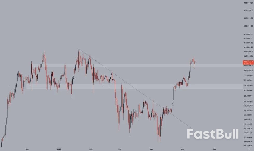 Despite the positive macro backdrop, Bitcoin’s price reaction was muted. At the time of writing, BTC is trading in the low $100,000 range – approximately 5.1% below its all-time high (ATH) of $108,786 set in January 2025.