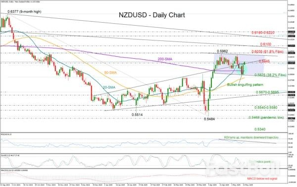 BTC trades at $103,311 on the daily chart | Source: BTCUSDT on TradingView.comNZD/USD dropped to Monday’s low of 0.5845 before bouncing back to retest its 20-day simple moving average (SMA) at 0.5945, as the euphoria about the US-China trade deal faded, weighing on the US dollar. With the price still hovering around this line and near the 50% Fibonacci retracement level of the September–April downleg, the key question now is whether the bulls have enough momentum to break through that resistance and push into the 0.6000 area.