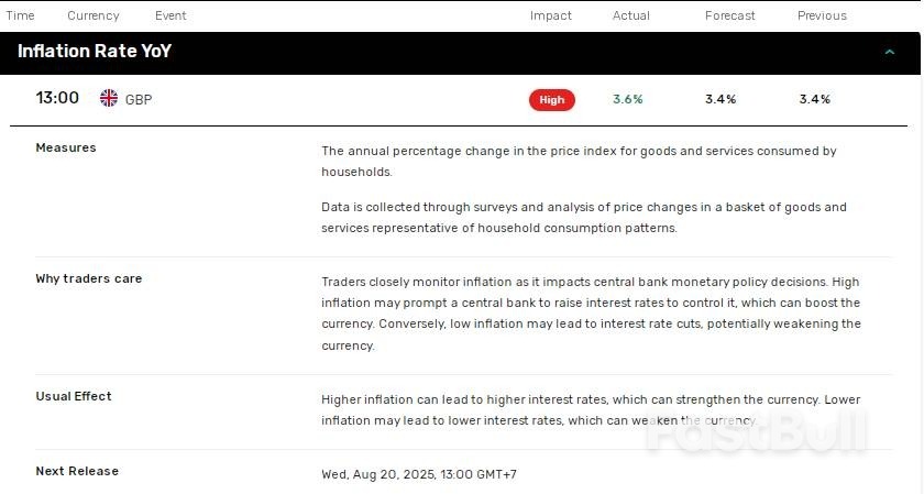 The UK’s annual inflation rate (headline) rose to 3.6% in June, up from 3.4% in May, with core inflation accelerating to 3.7% versus 3.5% in May.