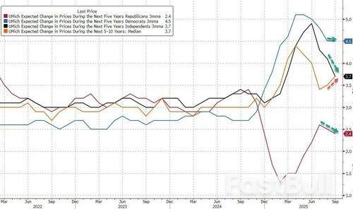 Well, two weeks later it appears they finally figured out what a mess their "data" reporting is and moments ago in the final Sept. UMich report they fixed it: according to the latest UMich propaganda, 1 Year inflation expectations are now 4.7%, down from 4.8% reported in the prelim report, and reversing some of the ridiculous August spike (how the average is 4.7% when Independents are 4.7%, Democrats are 5.4% and Republicans are 1.2% remains a mystery)...