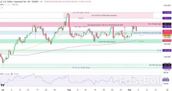 For bulls, look for a break above above the range highs between 148.70 to 149.50 in the case of a strong Friday NFP release (a strong beat would reduce total rate cuts = bullish for the pair)Bears would on the other hand seek for a break below the 146.00 to 146.50 range lows, supported by the 200-period Moving Average (currently at 145.52).Today, the US Dollar is seeing some decent selling after this morning’s miss in JOLTS job openings data which confirms the deceleration of the US Job market, the question for Friday is to what extent.