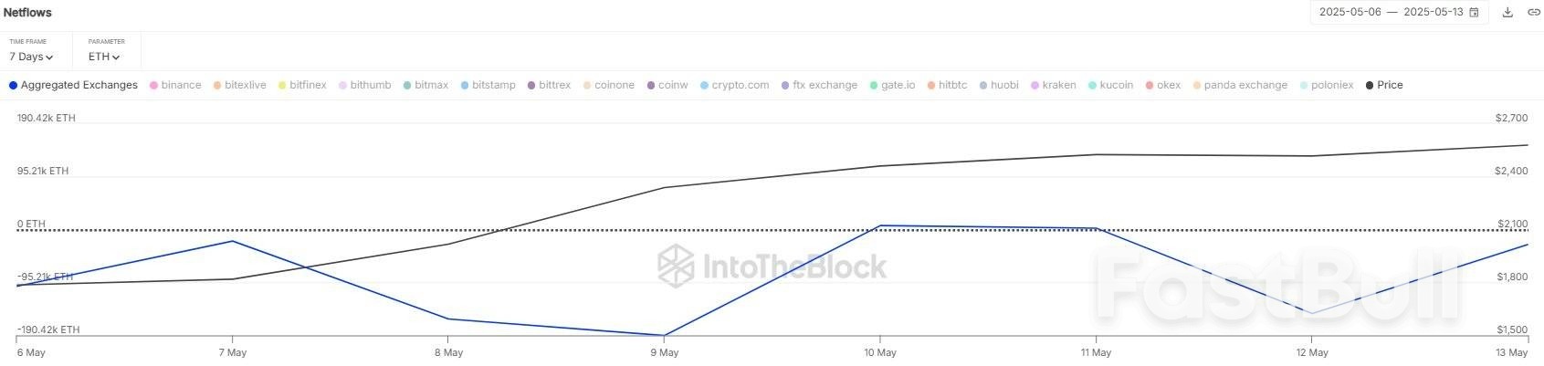 Now, here is the chart shared by the analytics firm that shows the trend in the Ethereum Exchange Netflow over the past week: