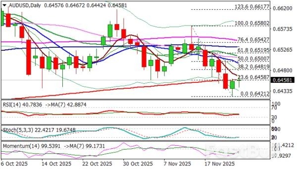 Close above the moving average (0.6458, also Fibo 23.6% of 0.6580/0.6412) to add fresh optimism, though more work at the upside (lift above 0.6500 zone) needed to verify signal.