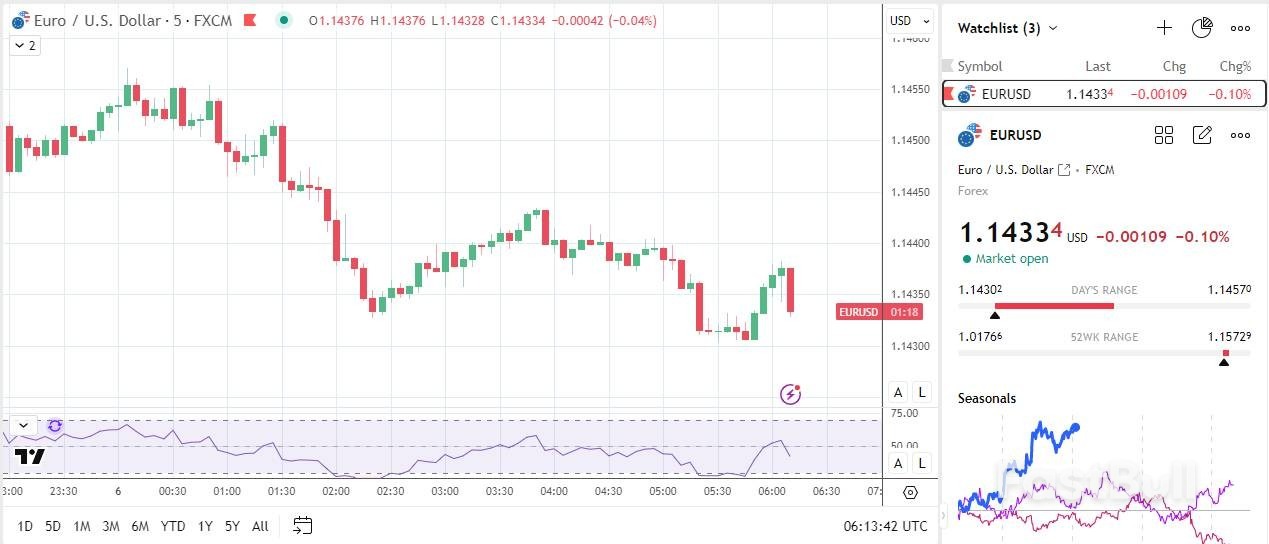 At the time of writing, the EUR/USD was down 0.10% to $1.14334.