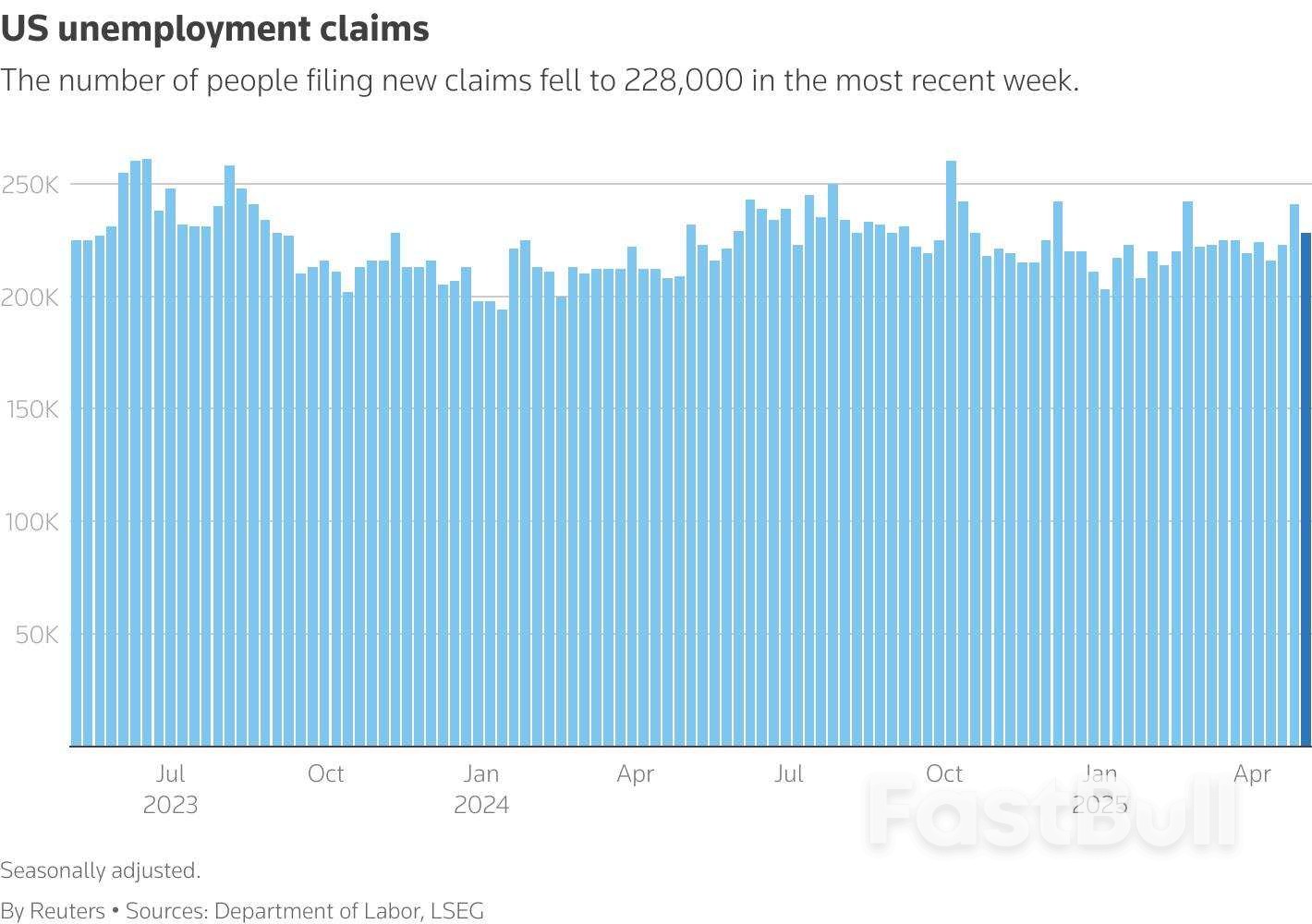 Initial claims for state unemployment benefits dropped 13,000 to a seasonally adjusted 228,000 for the week ended May 3. Economists polled by Reuters had forecast 230,000 claims for the latest week. The decline unwound some of the boost from school spring breaks in New York state, which had lifted claims to a two-month high.