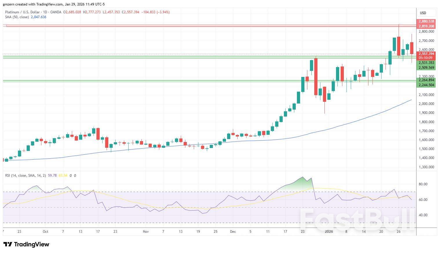 Platinum 290126 Daily ChartPlatinum is down by more than 4% amid strong pullback in precious metals markets.