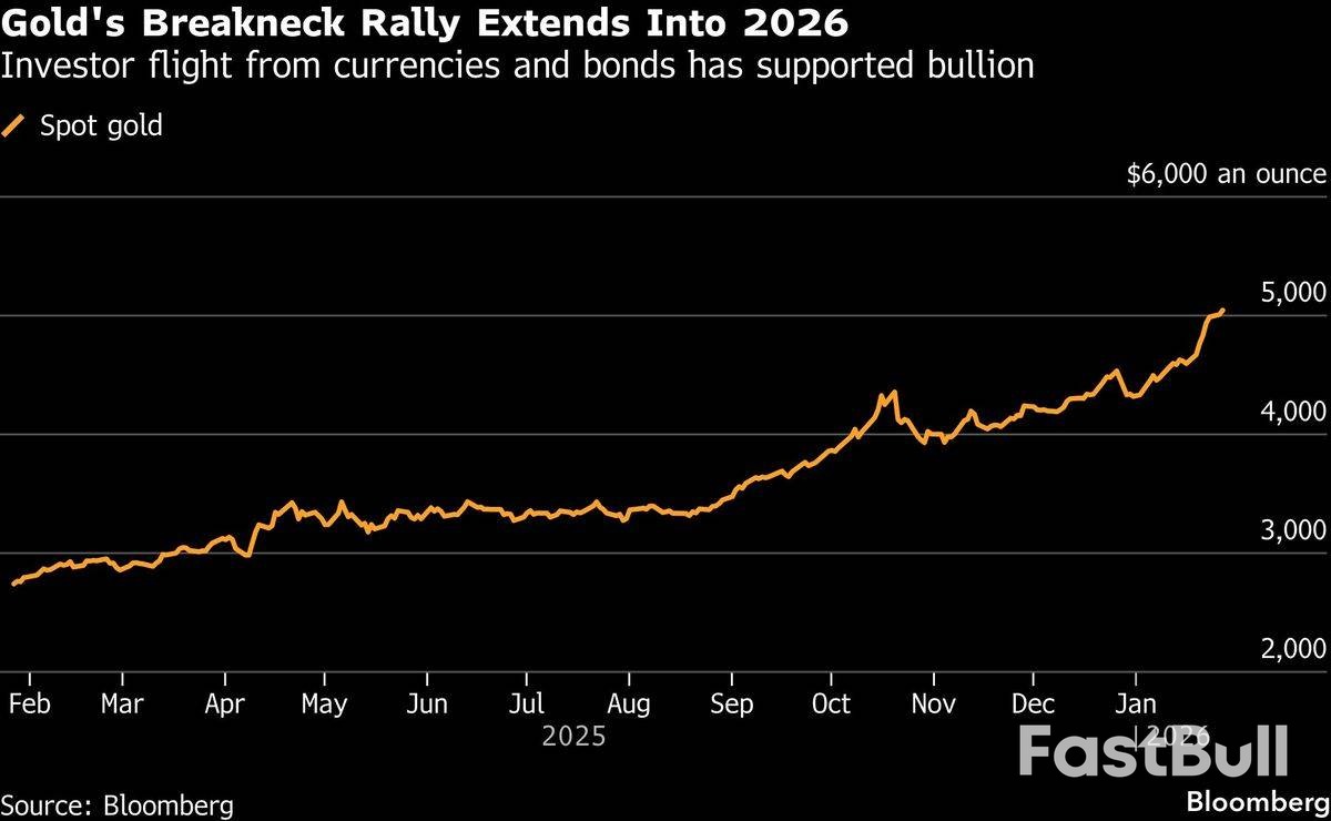 Gold prices pushed above the key US$5,000 per ounce mark for a second consecutive day, extending a powerful rally driven by a weakening U.S. dollar and mounting geopolitical risk. The precious metal is capitalizing on a flight from sovereign bonds and traditional currencies as investors seek safe-haven assets.