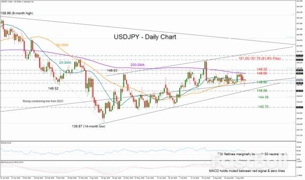 The data may reveal whether input costs continue to squeeze producers’ margins, strengthening the case for sticky inflation as the labor market shows stronger signs of cooling. From a technical perspective, traders remain indecisive: the RSI is hovering just below its neutral 50 mark, while the MACD is muted between its zero and red signal lines. Price action is also limited near the 20- and 50-day simple moving averages (SMAs).