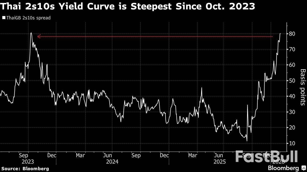 These additional spending pledges have helped push the spread between Thailand's two- and 10-year bond yields to its widest point since October 2023.