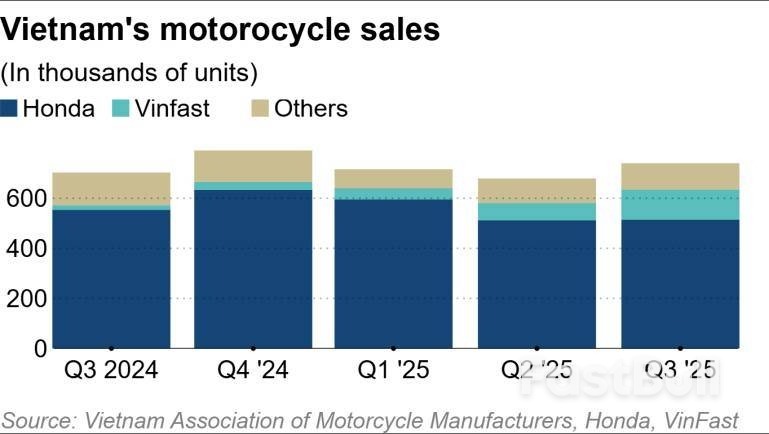 The VinFast sales number is still minimal compared to Honda's and to the 2.7 million bikes sold in 2024 across all brands, but the upstart's market share increased to 16% in the third quarter of 2025, up from the 3% share in the same quarter a year earlier.