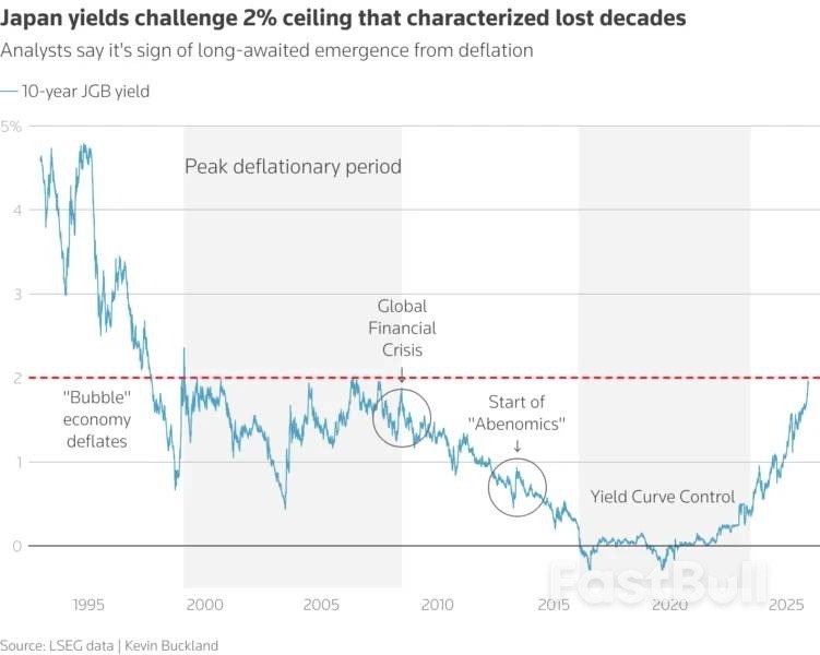 Japan's 10-year government bond yield jumped past the 2% ceiling for the first time in 26 years on Friday after the Bank of Japan (BOJ) raised interest rates to a three-decade high and signalled more policy tightening.