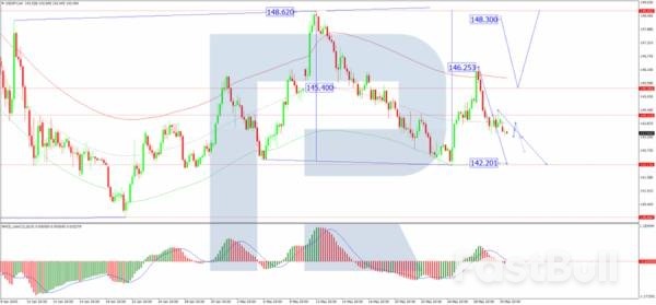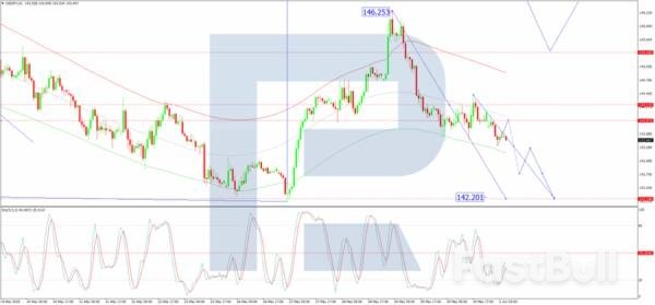 On the H1 chart, the pair is forming the fifth wave of the current downtrend, targeting 142.20. A temporary rebound to 143.88 is expected today, followed by a continuation of the decline to 142.70, with the potential for further movement down to 142.20. The Stochastic oscillator supports this outlook, with its signal line rising above 20 towards 50, suggesting a brief corrective move before further downside.