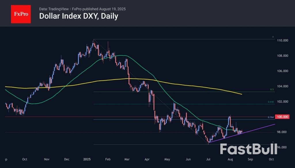 The dollar index reached its lowest point in this cycle on 1 July at 96.00. After that, we saw two impulses of growth and decline, and each time there were higher local lows and higher local highs. A support line passes through the lows, the last touch of which was on 15 August.