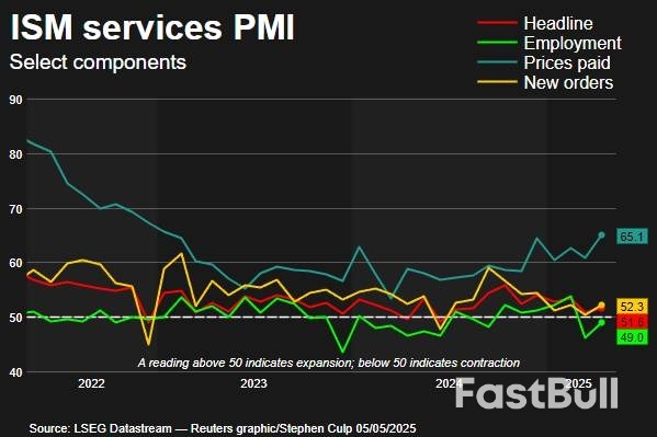 "The negative impact on services activity and inflation from the tariffs and government spending cuts are very real and already beginning to materialize," said Scott Anderson, chief U.S. economist at BMO Capital Markets. "Without a hard pivot in U.S. tariffs and government spending cuts, we expect the ISM services readings to remain under downward pressure."