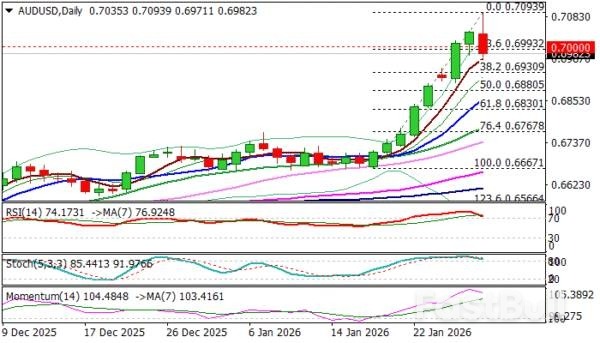 AUDUSD extended rally for nearly two weeks and hit three-year high on Thursday (0.7093), before easing.