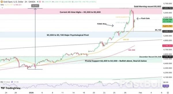 Gold is down to around $5'230 per ounce at the time of writing after flirting with the $5'600 level at yesterday's peak. That's insane considering the week started near $5'000. And what was just as insane was the sharp selloff that followed. Gold wiped out around $2.5 trillion in market value in just 30 minutes, sending prices from above $5'500 to around $5'100.