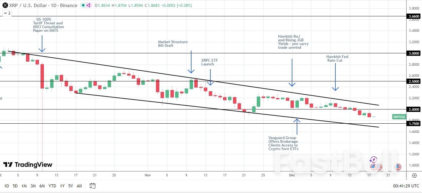 JGB – XRP – Daily Chart – 181225Concerns about a rerun of the mid-2024 yen carry trade unwind event, and the XRP sell-off have fueled the inverse correlation between XRP and 10-year JGB yields.