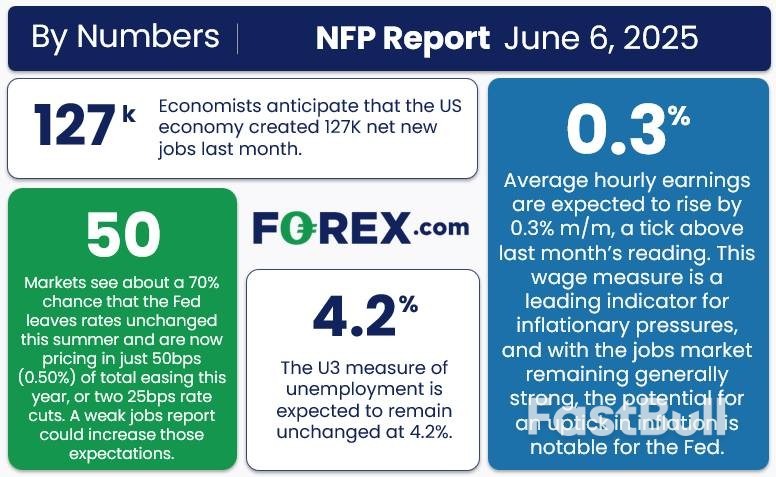 Traders and economists expect the NFP report to show that the US created 127K net new jobs, with average hourly earnings rising 0.3% m/m (3.7% y/y) and the U3 unemployment rate holding steady at 4.2%.