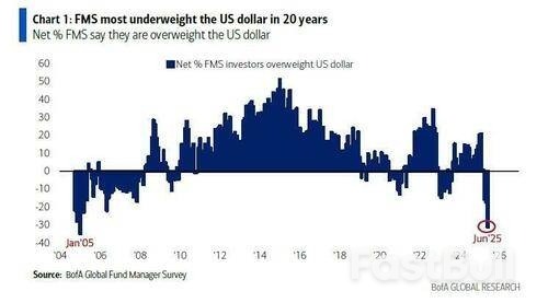 Furthermore, everyone from the “shoe-shine boy to the street corner vendor” is shorting the dollar. According to BofA’s fund manager survey, the short position against the US Dollar is at the highest level in 20 years. As such, any reversal in the dollar could be substantial if those “shorts” are forced to reverse their positions.