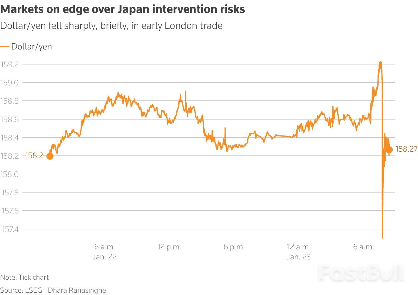 The yen strengthened dramatically, moving from around 159.20 per dollar to as strong as 153.30 by the close of the day.