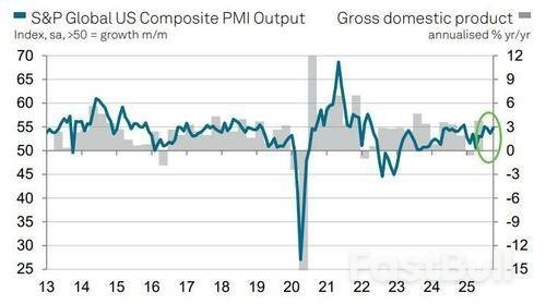 "October's flash PMI data point to sustained strong economic growth at the start of the fourth quarter," according to Chris Williamson, Chief Business Economist at S&P Global Market Intelligence, "with business activity picking up momentum across both manufacturing and services despite some reports of businesses being adversely impacted by the government shutdown."