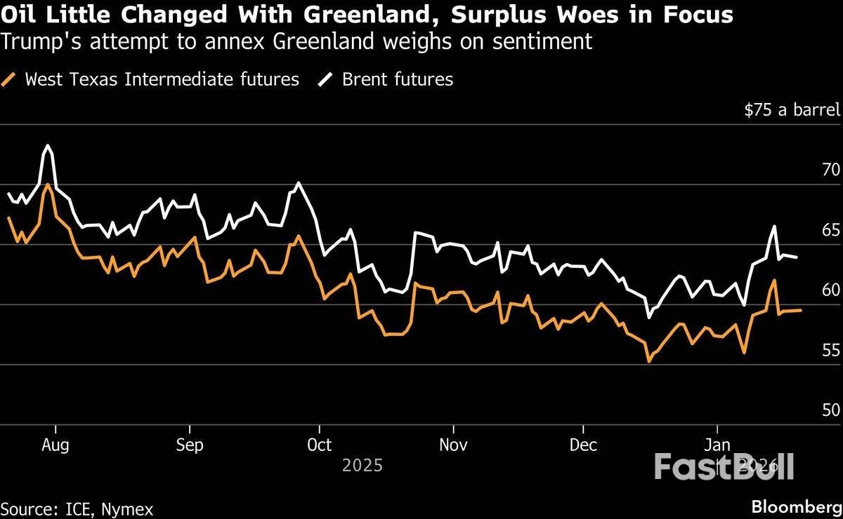 Oil steadied as traders tracked the fallout from the US push to take control of Greenland and concerns about a global surplus.