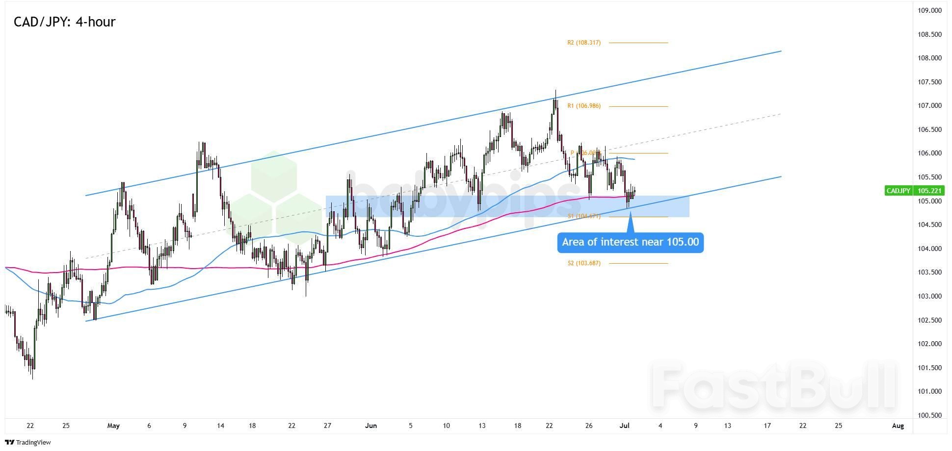 But if downside momentum picks up and CAD/JPY breaks below the channel support, the uptrend could be in trouble. In that case, watch for a possible drop toward the 104.00 handle or the S2 Pivot Point near 103.69.