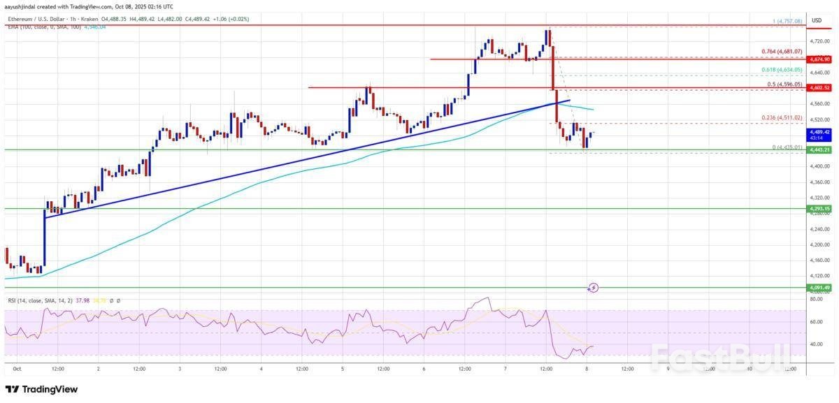 Ethereum price is now trading below $4,550 and the 100-hourly Simple Moving Average. On the upside, the price could face resistance near the $4,520 level and the 23.6% Fib retracement level of the recent decline from the $4,759 swing high to the $4,435 low.